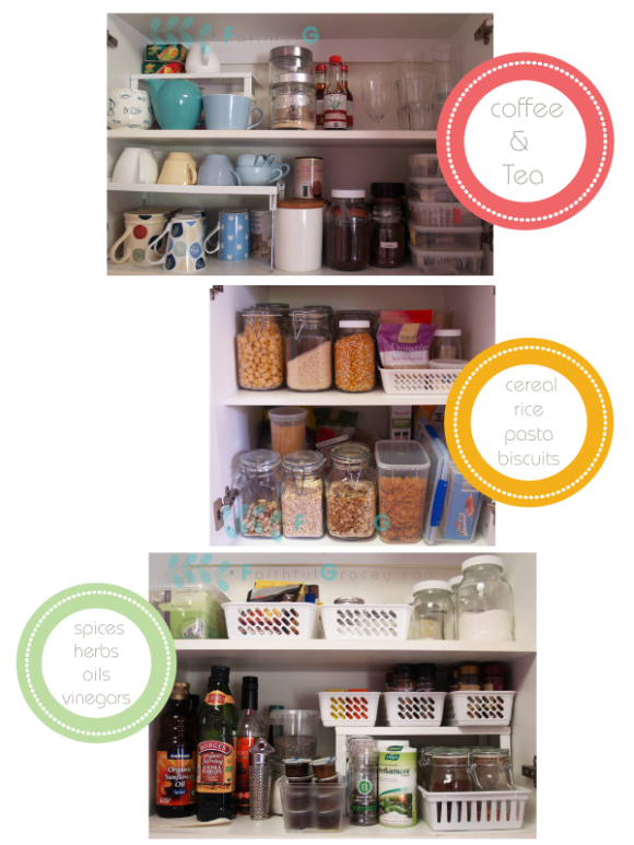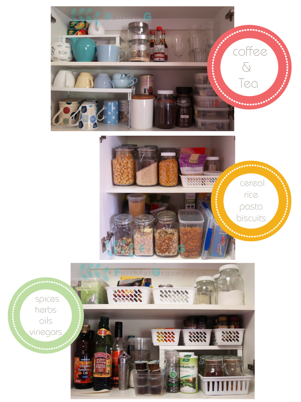 keeping these cupboards organised is really important, as they house some of the most used items throughout the day. I mostly prefer to use glass jars for storage and BPA FREE plastic containers.